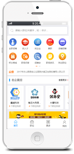 - 海量工作機(jī)會(huì)等著您,同一時(shí)刻您將面對(duì)數(shù)以十萬的工作機(jī)會(huì);幫助您記憶最近搜索條件,簡(jiǎn)化您的搜索操作。